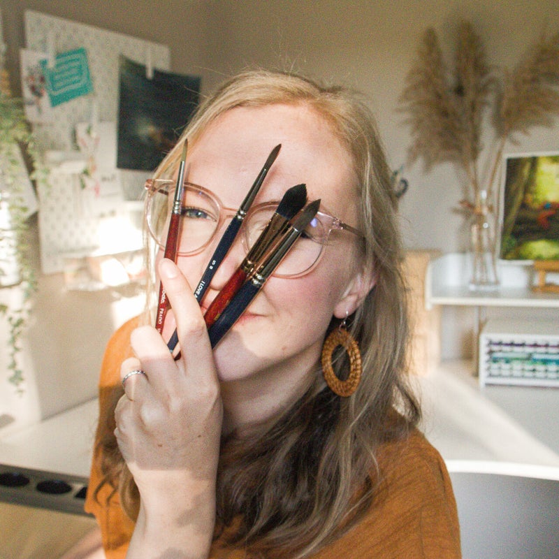 Inmiddels ruil ik mijn potloden meestal in voor aquarel. Het liefst werk ik met echte materialen. Mijn favorieten zijn de aquarelverf van Rembrandt en van Daniel Smith. Door rijke kleuren, natuur en licht en donker contrast, hoop ik je een warm gevoel mee te geven.