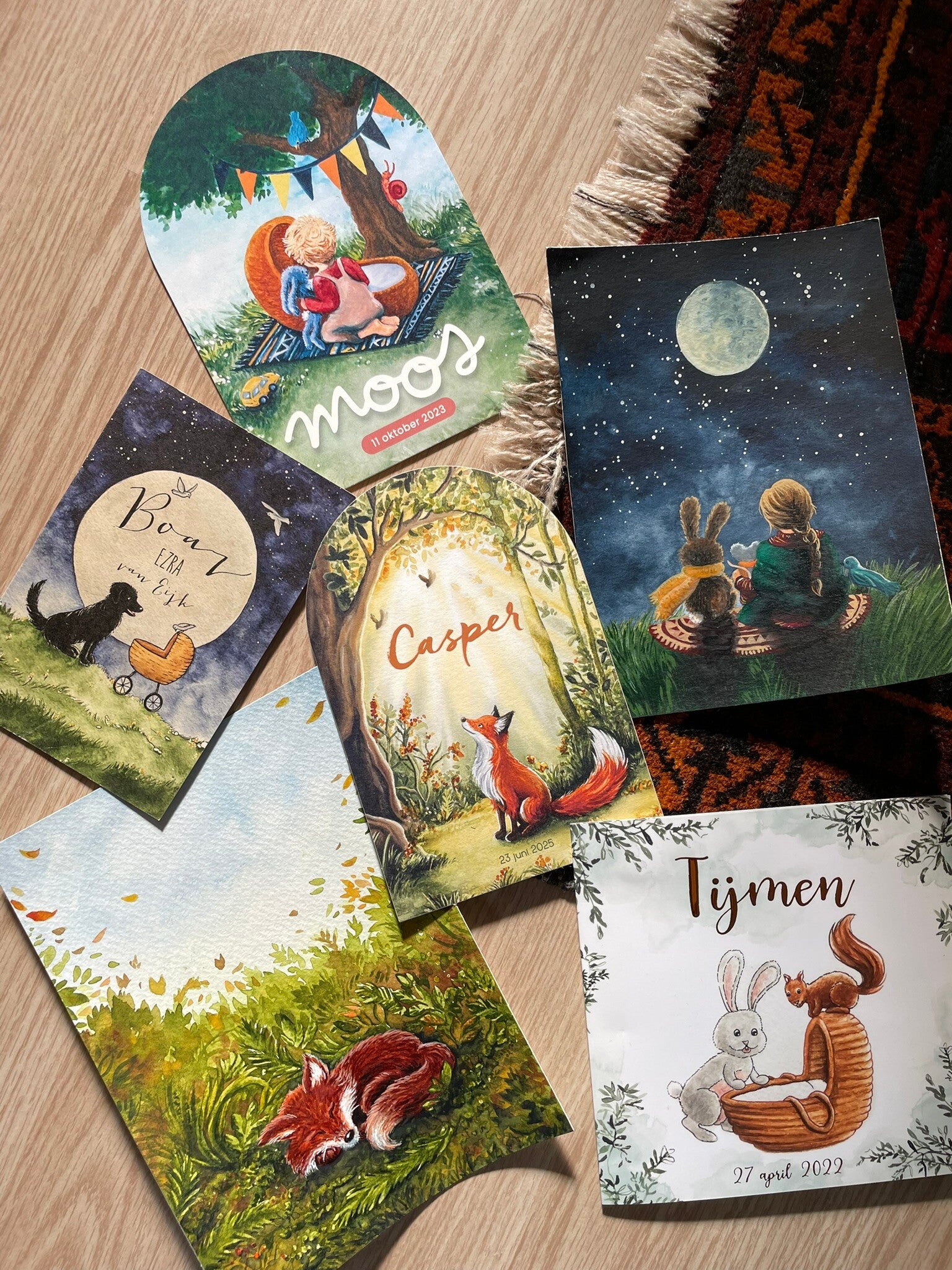 Ontwerp en uitvoering op maat voor o.a. geboortekaartjes en muurschilderingen.